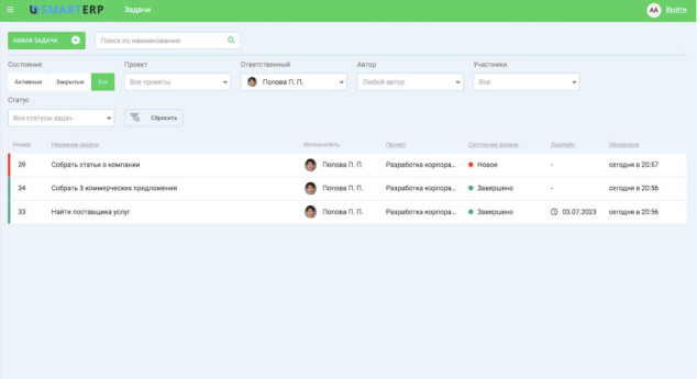 With the growing number of implementations of the platform the task tracker was finalized taking into account the real needs of real business and today it is a proven business tool with a clear interface
